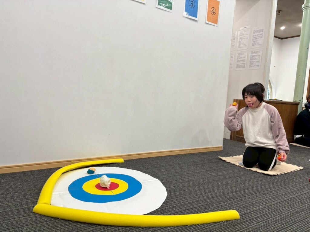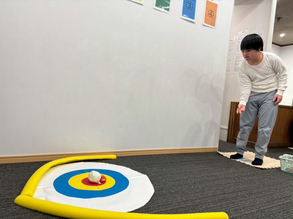 今日は室内で ボッチャ風のゲーム活動 に取り組みました。