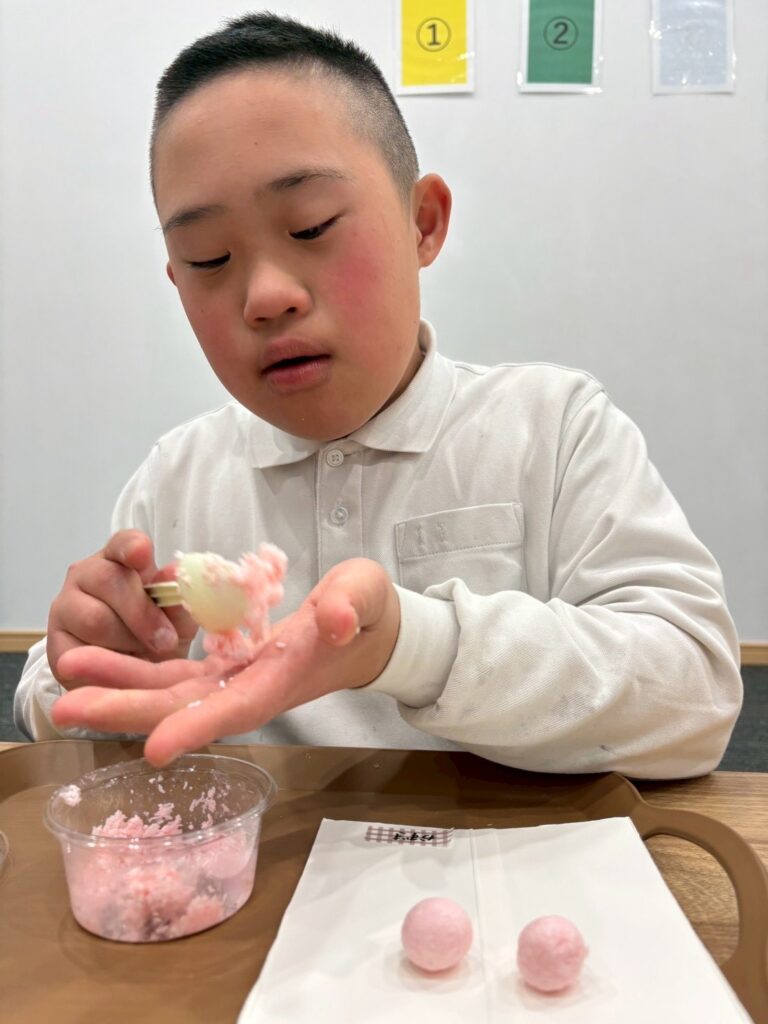 今回は、せっけんの粉に色水を入れて「コロコロせっけん作り」に挑戦しました