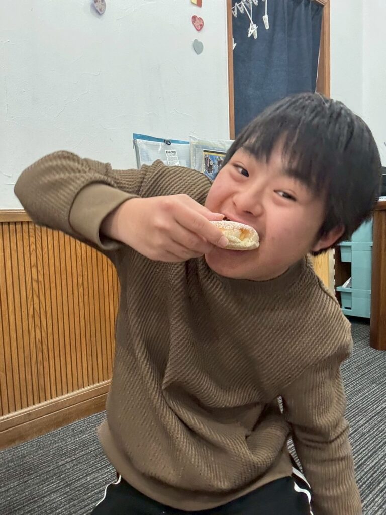 お友達同士仲良くドーナツを食べました。
