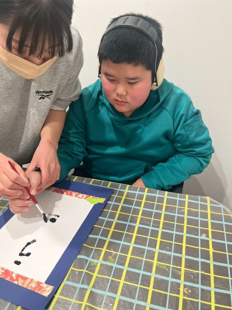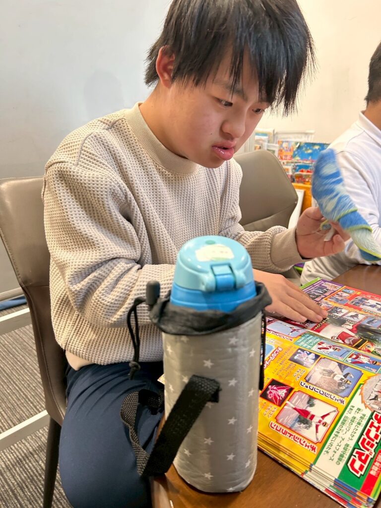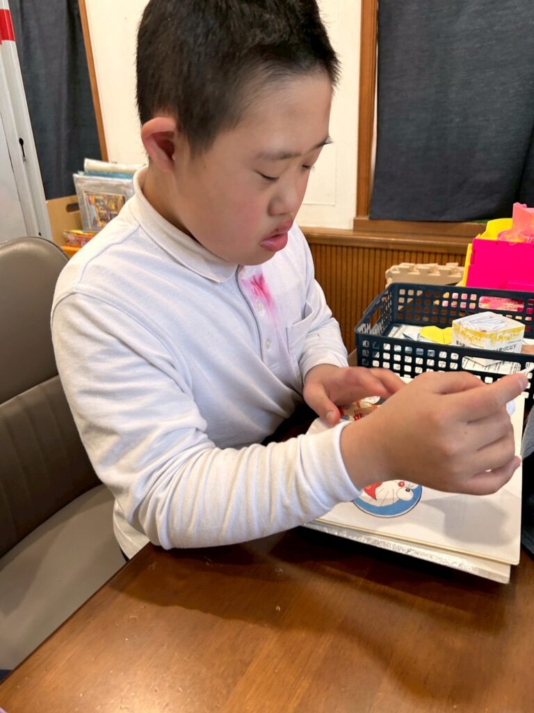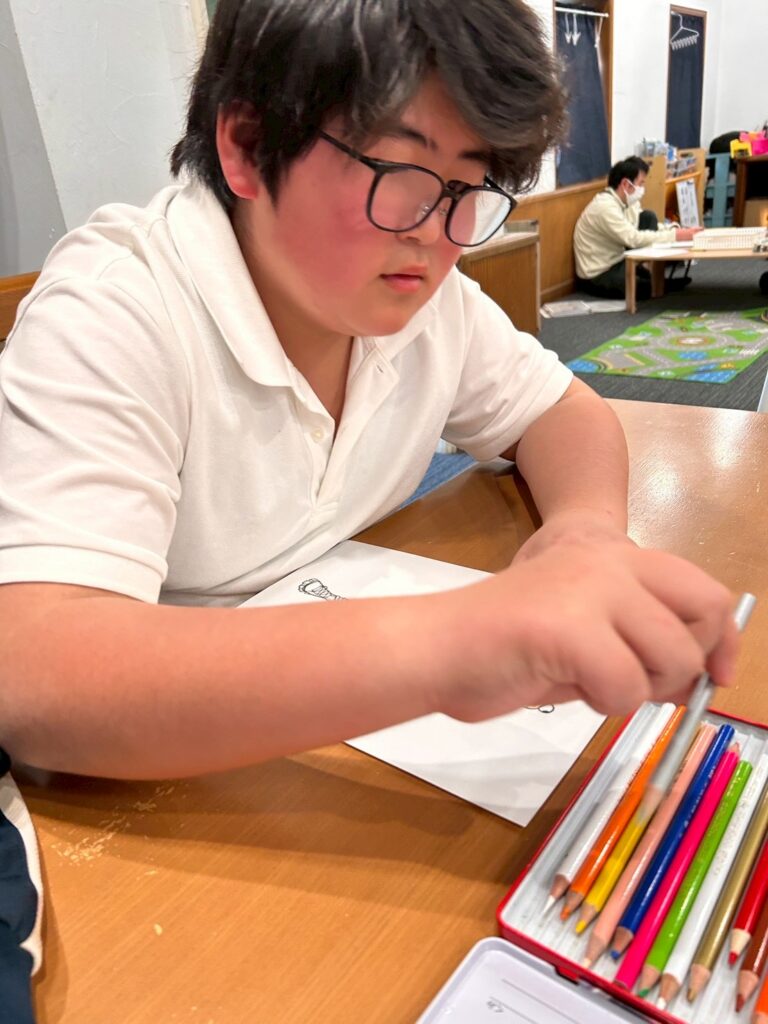 塗り絵・迷路・本を読むコーナーを用意し、それぞれが落ち着いた活動を選びながら、静かに順番を待つことができていました。待ち時間も見通しを持って過ごすことで、気持ちの切り替えをしながら活動に参加することができました。