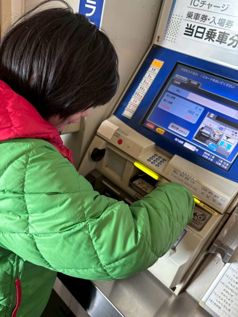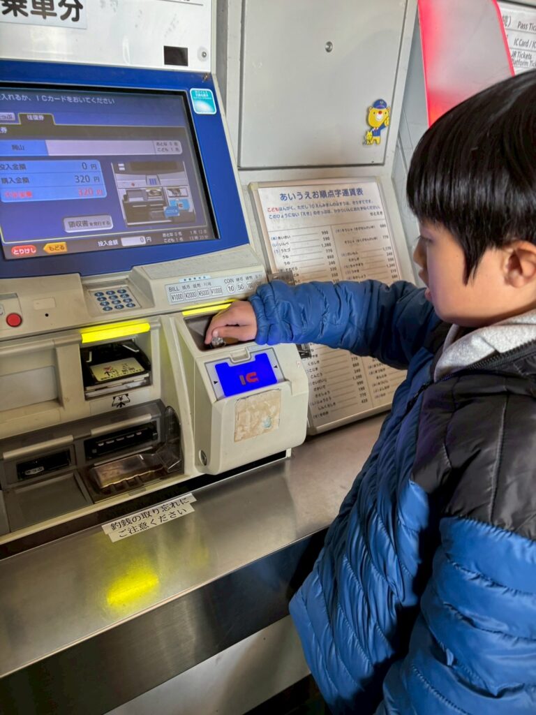 改札では切符を買うところから挑戦して、「ここで合ってる?」と確認しながら操作する姿が見られました。